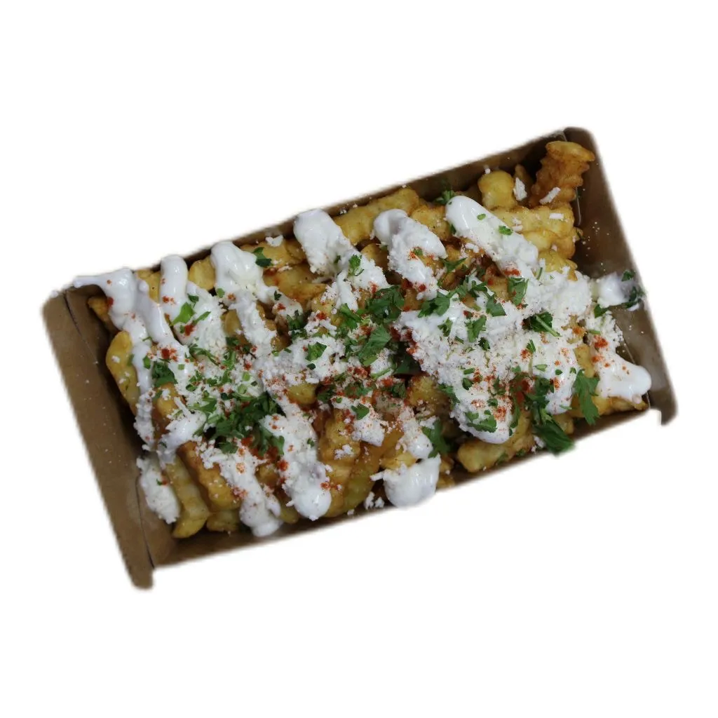 Served With Feta Cheese, Garlic Sauce, Paprika, Parsley Gyro Meat And Tzatziki Sauce.